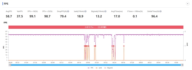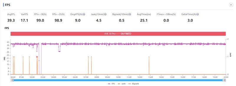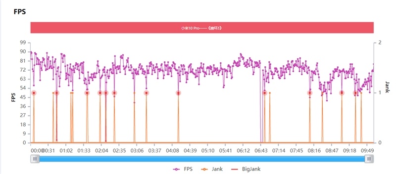 本次我们挑选了三款游戏进行测试,全部使用小米10 Pro能开启的最高画面效果,利用软件PerfDog记录帧数情况。