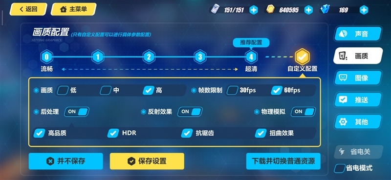 自定义画质,特效全开的情况下游玩《崩坏3》,要注意此时由于软件适配问题,出现了超出限制上限的平均帧率,故耗电会有所额外增加。