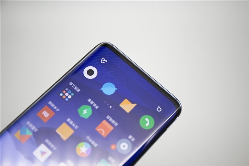 小米10 Pro正面,可以看到其打孔设计。孔径不算大,设置在左上角。相较于水滴屏、刘海屏这类全面屏方案,挖孔式无疑是升降式外最完美的一种全面屏方案。考虑到骁龙865以及1亿像素CMOS对于空间的占用,很难有多余的空间留给升降式结构,挖孔式设计无疑是出于手感和外观双重考虑下最好的选择。
