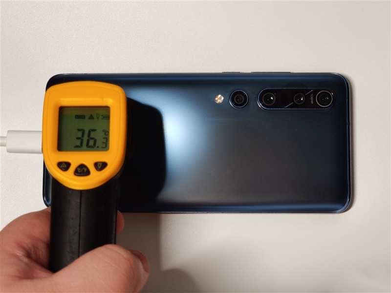 散热配置则是小米10 Pro带来的另一款惊喜。超大面积的VC板加6层石墨,几乎覆盖了整个背板。 经过测试,即使是快充下,整体背板温度也维持在了36℃以下,温度最高的充电接口处,也仅仅达到了36.3℃而已。在游戏时,均热板的作用更加明显,不会有明显的发热点出现,你可以感觉到热量在背部的分布十分均匀。