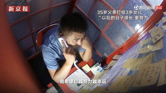 “喂,姑娘,这个是爸爸在你在3岁的时候,给你打的一通电话,希望20年后你能看到这个视频。人生可能会有很多坎坷,但只要你努力了,我希望你越努力越幸运。”走出电话亭接受采访时,这位硬汉父亲哭着说道:“感觉自己为人父母,为人子女,自己做的还不够优秀。”