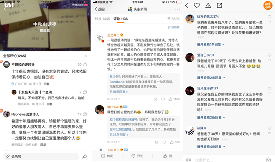 中秋三天,电话亭里发生的故事被呈现为9支短片,动人的情绪引发网友共鸣。腾讯新闻上的相关视频播放量近2000万;微博上,“中秋电话亭”话题阅读达2800万,网友互动超6000次;在快手,一个个十几秒的视频引发老铁们的参与,相关短视频播放量亦超千万。